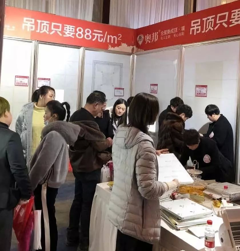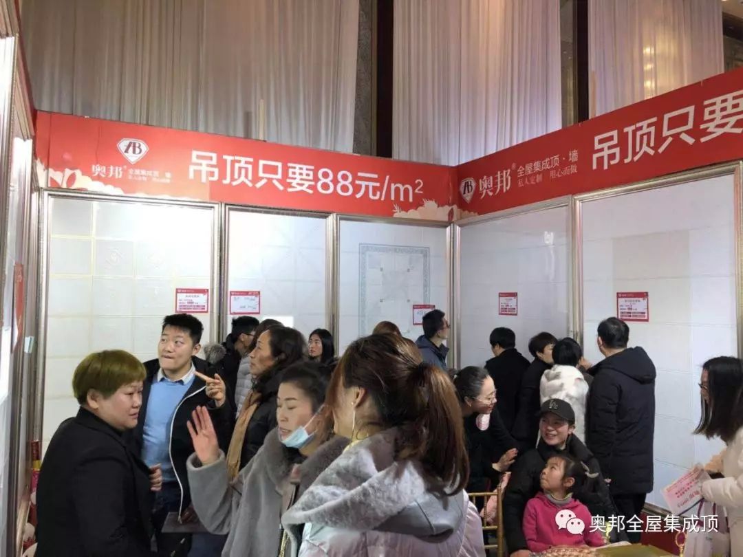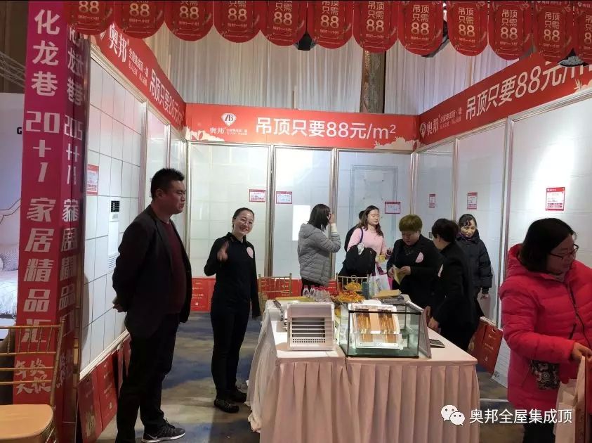 奧邦限量推出的特價吊頂、電器,現場吸引不少顧客前來了解咨詢,瞧,咱們奧邦常州的經銷商家人們正在熱情、耐心的介紹產品的優勢呢。